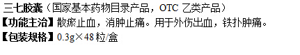 三 七 膠 囊(國家基本藥物目錄產品,OTC乙類產品)