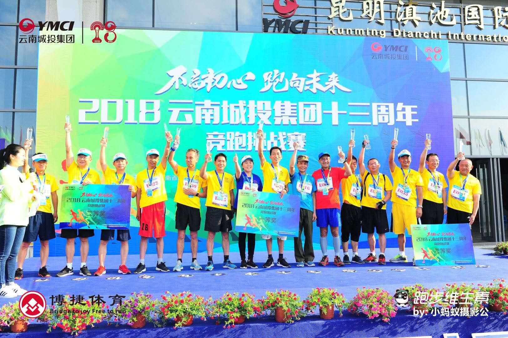 2018年4月28日,云南城投集團公司在昆明市滇池國際會展中心舉行13周年競跑挑戰賽,共有來自集團下屬29家公司的選手近千人參賽。本次比賽以“不忘初心、跑向未來”為主題,深入開展全集團體育健身運動,豐富廣大員工文化體育生活,提高全體員工身體素質,培養積極健康的道德情操,進一步提升集團凝聚力和團結協作精神,助推集團又好又快持續發展。比賽分13公里青年組、13公里中年組、4.28公里青年組、4.28公里中年組。特安吶公司員工王武山、沈定詠、姚先麗、張英敏、王道明等五人參加比賽。下午3時許,隨著集團公司黨委馮學蘭副書記的一聲發號槍響,參賽選手如潮水般向前沖去,這是一場體力與意志的比賽,只有咬緊牙關你才能堅持跑完13公里,有的人中途退場了,有的中暑暈倒了,有的摔倒了,但更多的人是繼續堅持向前跑。比賽經過一個多小時的激烈角逐,我公司參賽選手沈定詠獲得中年男子組4.28公里一等獎,姚先麗獲得中年女子組13公里一等獎,王武山獲得中年男子組13公里二等獎。