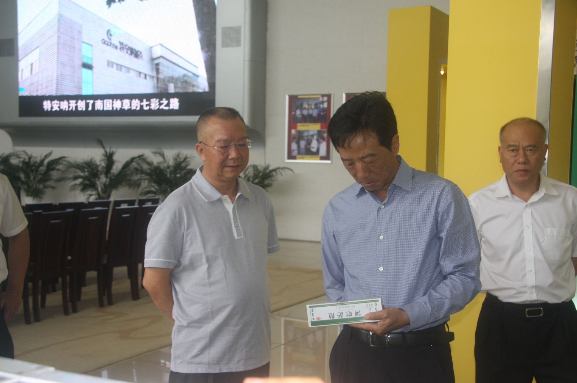 2018年6月27日,農(nóng)業(yè)行云南分行楊光廷行長(zhǎng)一行在農(nóng)業(yè)銀行文山分行梁永行長(zhǎng)的陪同下,蒞臨特安吶公司調(diào)研。特安吶公司董事長(zhǎng)唐修文、總經(jīng)理孟維、常務(wù)副總經(jīng)理陳奕先等領(lǐng)導(dǎo)在展示廳迎接。唐董事長(zhǎng)向楊行長(zhǎng)介紹了公司的創(chuàng)業(yè)歷程及產(chǎn)品情況,回顧了企業(yè)從小到大、從弱到強(qiáng)的發(fā)展過程,公司從租賃手工作坊生產(chǎn)到擁有占地200余畝、16條生產(chǎn)線的現(xiàn)代化生產(chǎn)基地,主打產(chǎn)品從頭痛粉、安乃近片到血塞通片、七生力片、七生靜片等三七系列精深加工產(chǎn)品的轉(zhuǎn)變,構(gòu)建了“產(chǎn)品研發(fā)基地、三七GAP種植基地、中藥材加工基地、產(chǎn)品生產(chǎn)基地、物流倉(cāng)儲(chǔ)基地”和“三七國(guó)際交易中心、商務(wù)服務(wù)中心、物資配套服務(wù)中心”為平臺(tái)的三七產(chǎn)業(yè)鏈。2015年,云南城投集團(tuán)旗下的云南三七科技有限公司增資控股特安吶公司,公司實(shí)力全面提升,發(fā)展一年比一年好。特安吶公司持續(xù)的發(fā)展,離不開金融部門的關(guān)心支持,特別是農(nóng)業(yè)銀行給予特安吶的支持,形成了銀企合作的一段佳話。對(duì)特安吶公司提出的融資需求,楊行長(zhǎng)給予了積極回應(yīng),表示要繼續(xù)支持公司做強(qiáng)做大,在授信額度、融資信貸方面繼續(xù)予以大力支持。