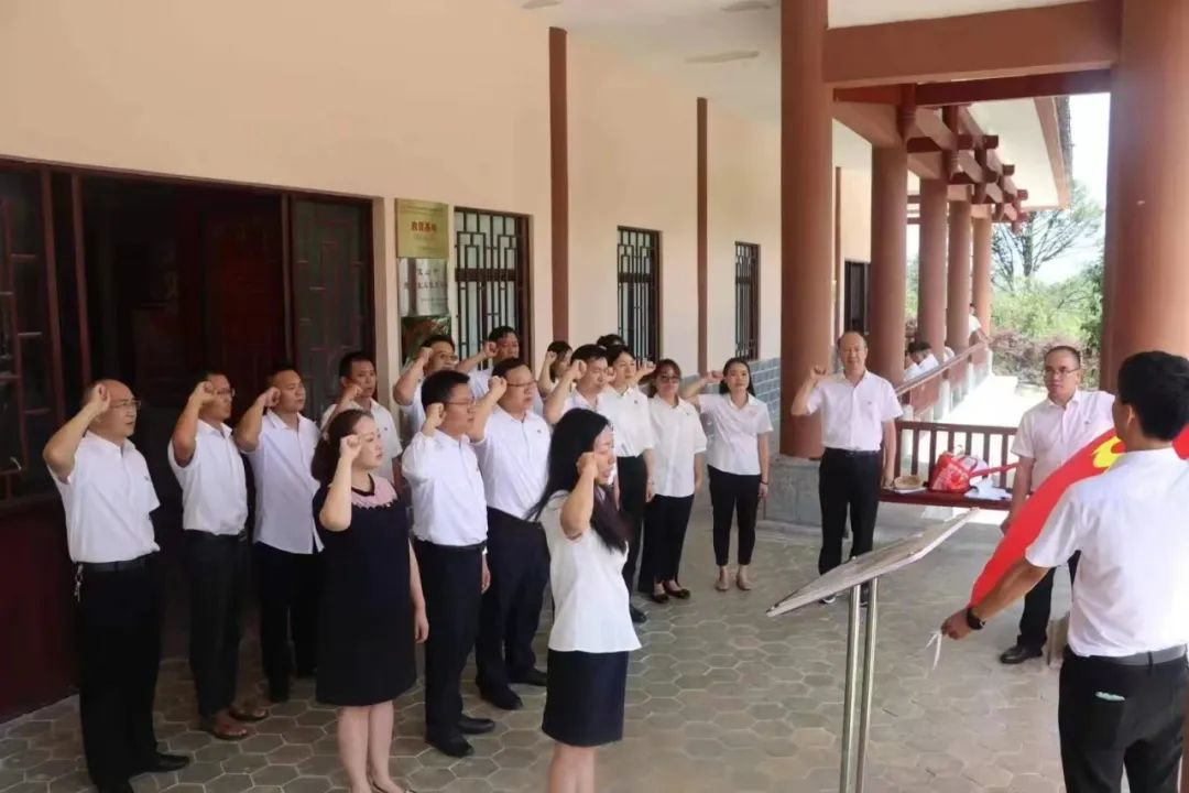 參觀結束后,公司黨支部書記鄒慧寧帶領全體黨員,面對鮮紅的黨旗重溫入黨誓詞 ,回憶入黨宣誓時的莊嚴承諾和奮斗決心,增強黨員光榮感和使命感。