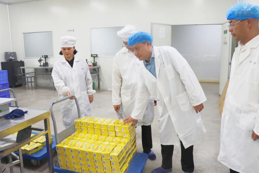 黃波分別來到原料倉庫、成品倉庫、綜合包裝車間、制劑車間,深入了解產品存放、設備運行、安全生產、人員管理等情況,并聽取了相關負責人對現場管理、生產工藝、質量管理等方面情況介紹。