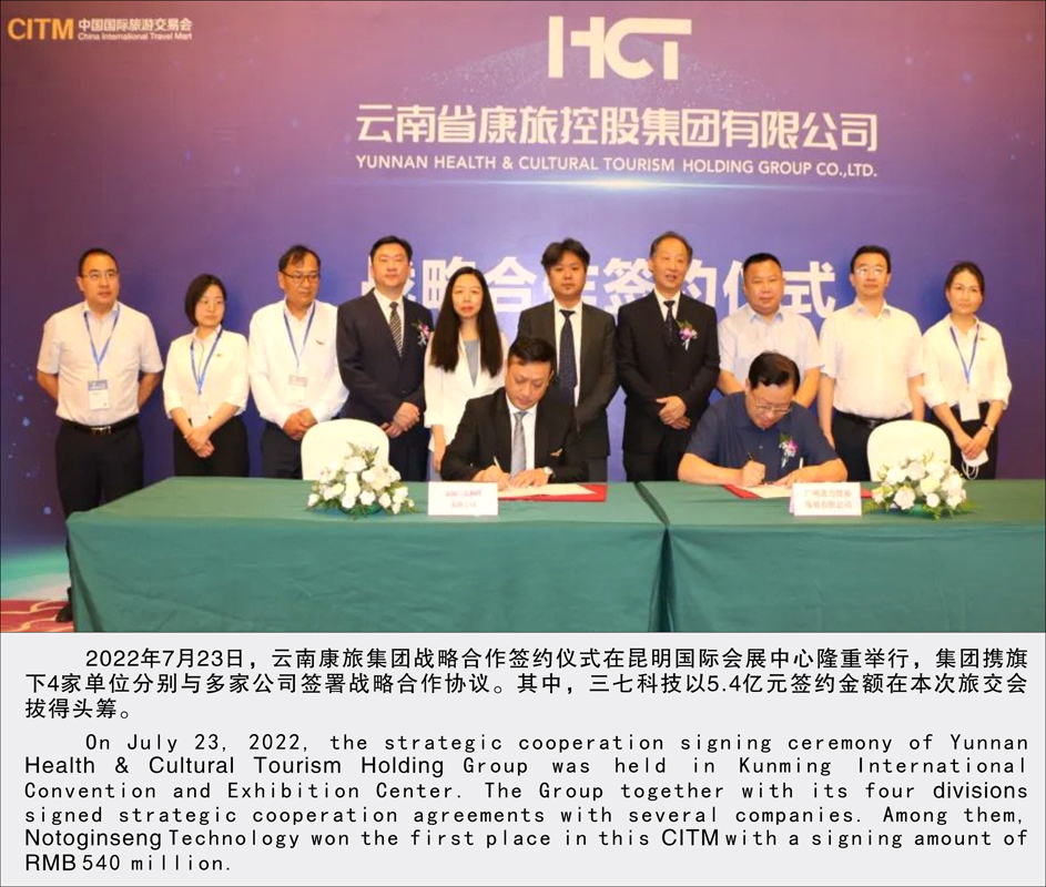 2022年7月23日,云南康旅集團(tuán)戰(zhàn)略合作簽約儀式在昆明國(guó)際會(huì)展中心隆重舉行,集團(tuán)攜旗下4家單位分別與多家公司簽署戰(zhàn)略合作協(xié)議。其中,三七科技以5.4億元簽約金額在本次旅交會(huì)拔得頭籌。